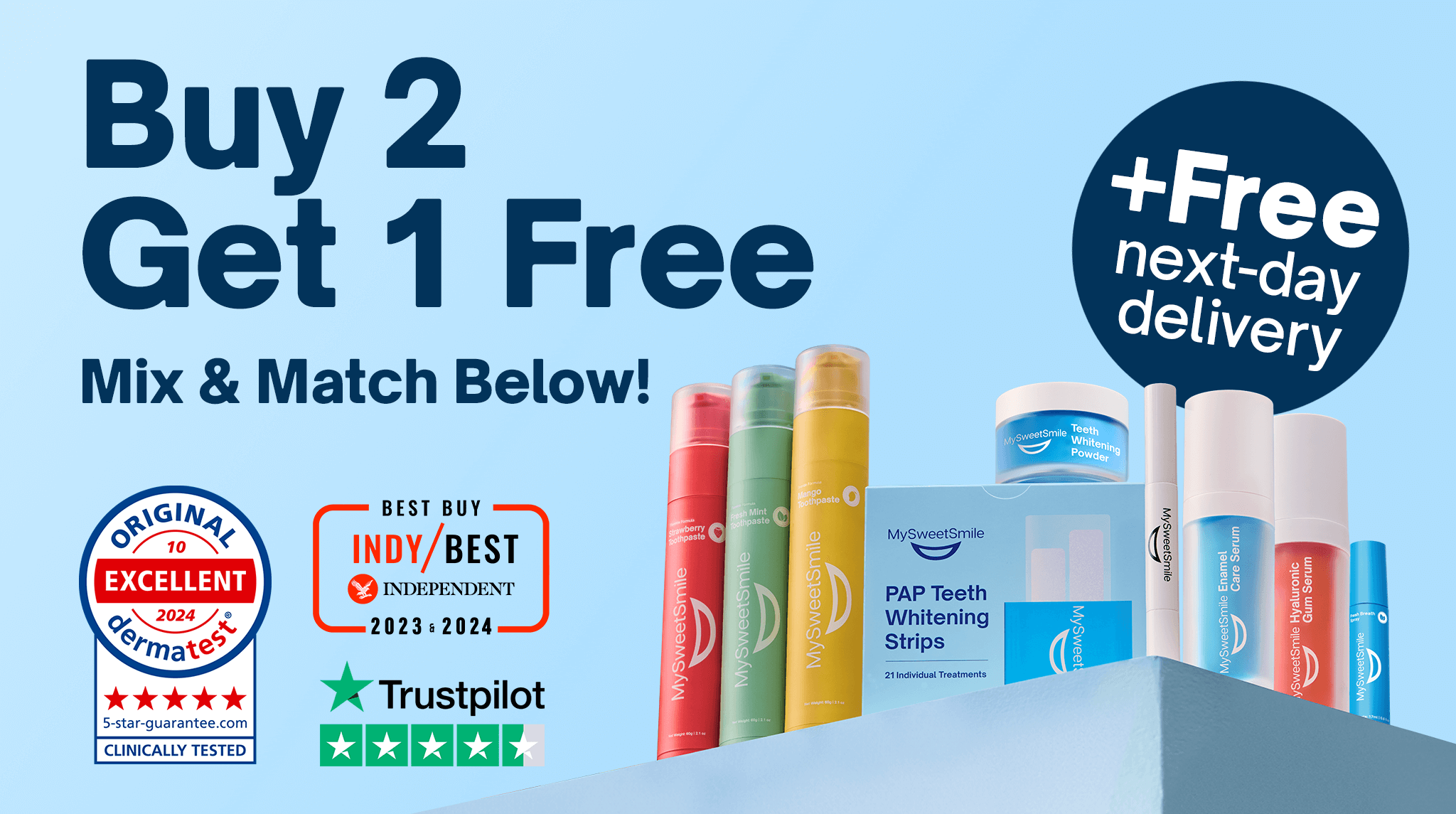 Clinically tested in Germany by Dermatest®, MySweetSmile has been awarded a 5-Star Seal of Approval by dentists and dermatologists, recognising our commitment to safe, effective, and enamel-friendly oral care.