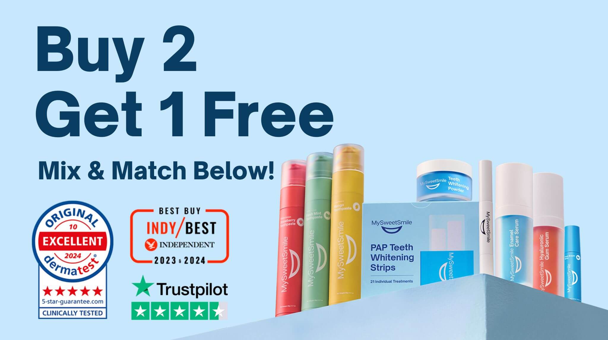 Clinically tested in Germany by Dermatest®, MySweetSmile has been awarded a 5-Star Seal of Approval by dentists and dermatologists, recognising our commitment to enamel-safe, sensitivity-free, and ultra-effective whitening formulas you can trust.