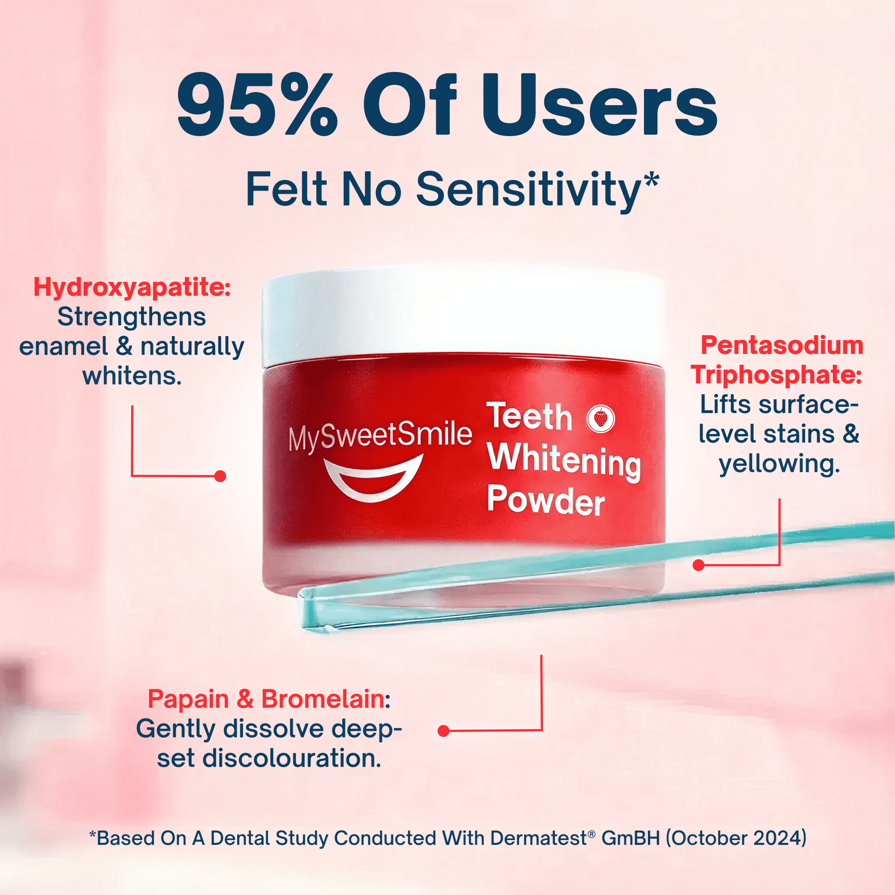 Voted Best Teeth Whitening Brand by The Independent’s IndyBest Awards in 2023 & 2024, MySweetSmile’s Teeth Whitening Powder is a dentist-approved whitening solution, trusted worldwide by over 1 million customers for its clinically proven, peroxide-free formula.